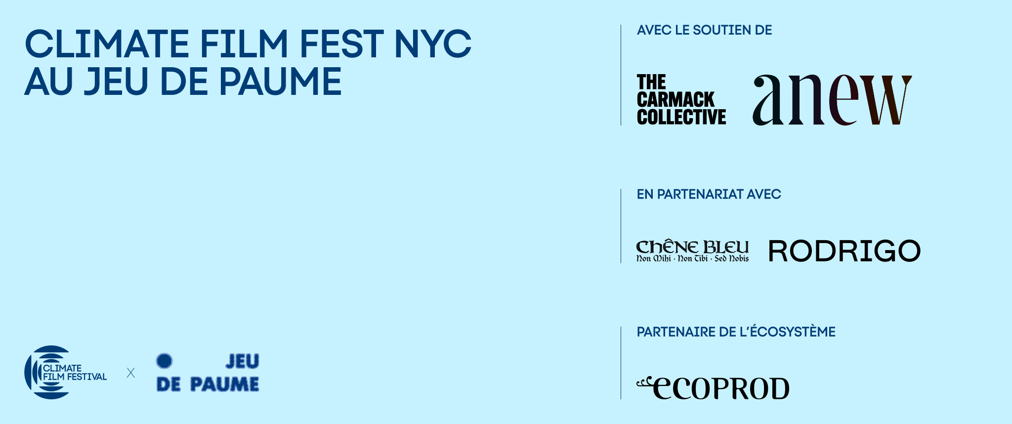 A heartfelt thanks to the sponsors and supporters who made this possible: The Carmack Collective and Anew for sustaining support, Chêne Bleu for sustainable wine, Ecoprod for ecosystem support, and Studio Rodrigo for design.