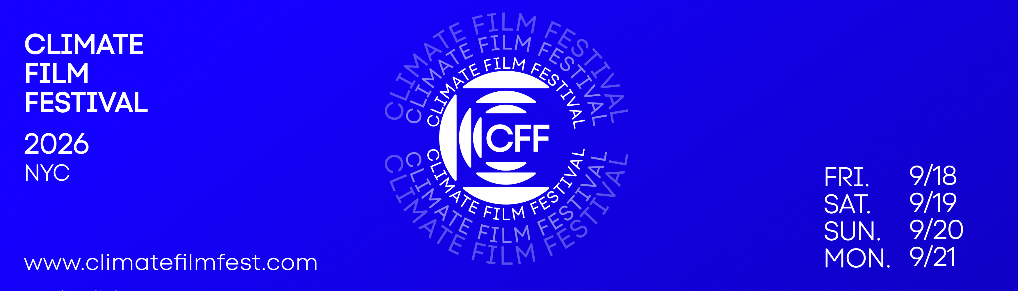 CFF will take place Friday, September 18th through Monday, September 21st in venues across New York City. CFF occurs during the opening weekend of Climate Week NYC, the largest gathering of its kind, attracting policymakers and change makers from around the world.